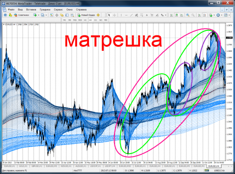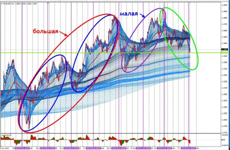 После отработки большой матрешки (синий эллипс), была матрешка малая и откат в ней составил больше 50%, начала формироваться зеленая матрешка.
