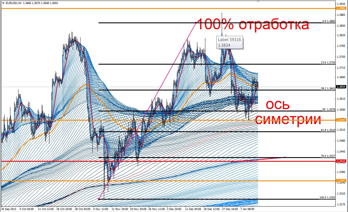 1. Каждое движение цены имеет свой жгут и будет отрабатываться своя симметрия