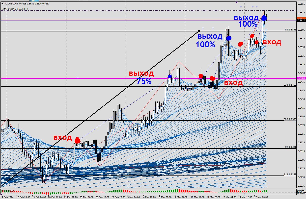 выход по ФИБО 75 и 100% относительно центрального седла